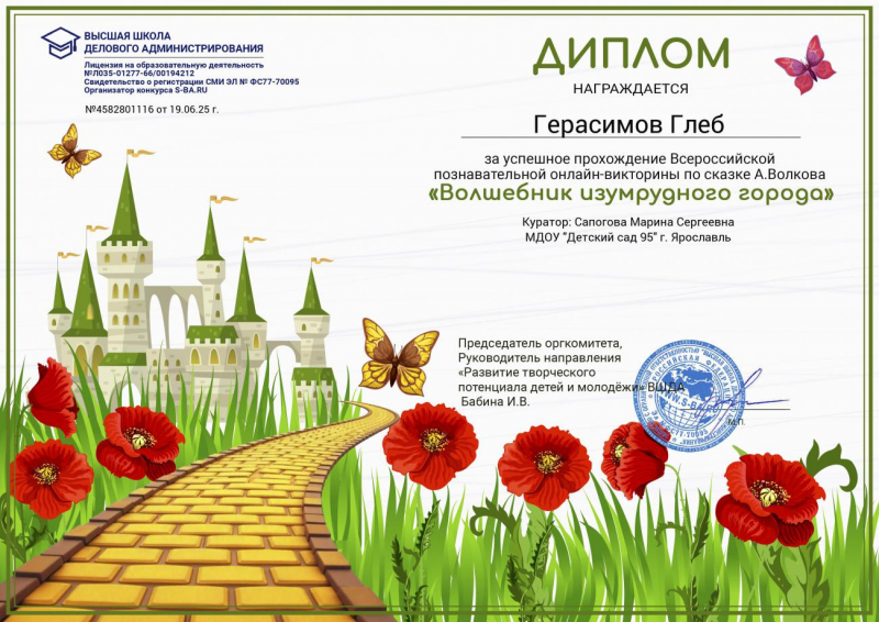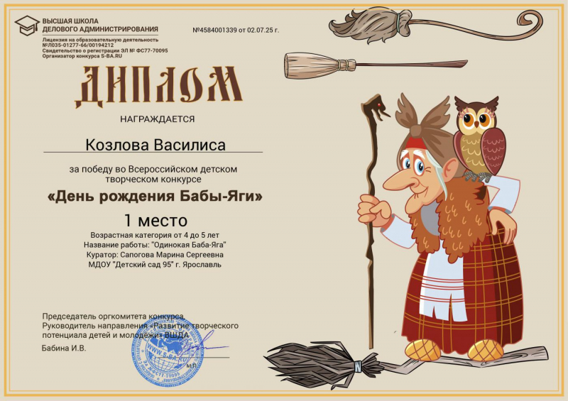 Сапогова Марина Сергеевна, воспитатель МДОУ "Детский сад № 95" г.Ярославль