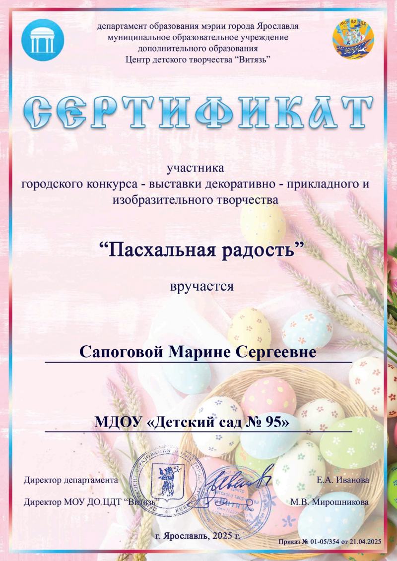 Сапогова Марина Сергеевна, воспитатель МДОУ "Детский сад № 95" г.Ярославль